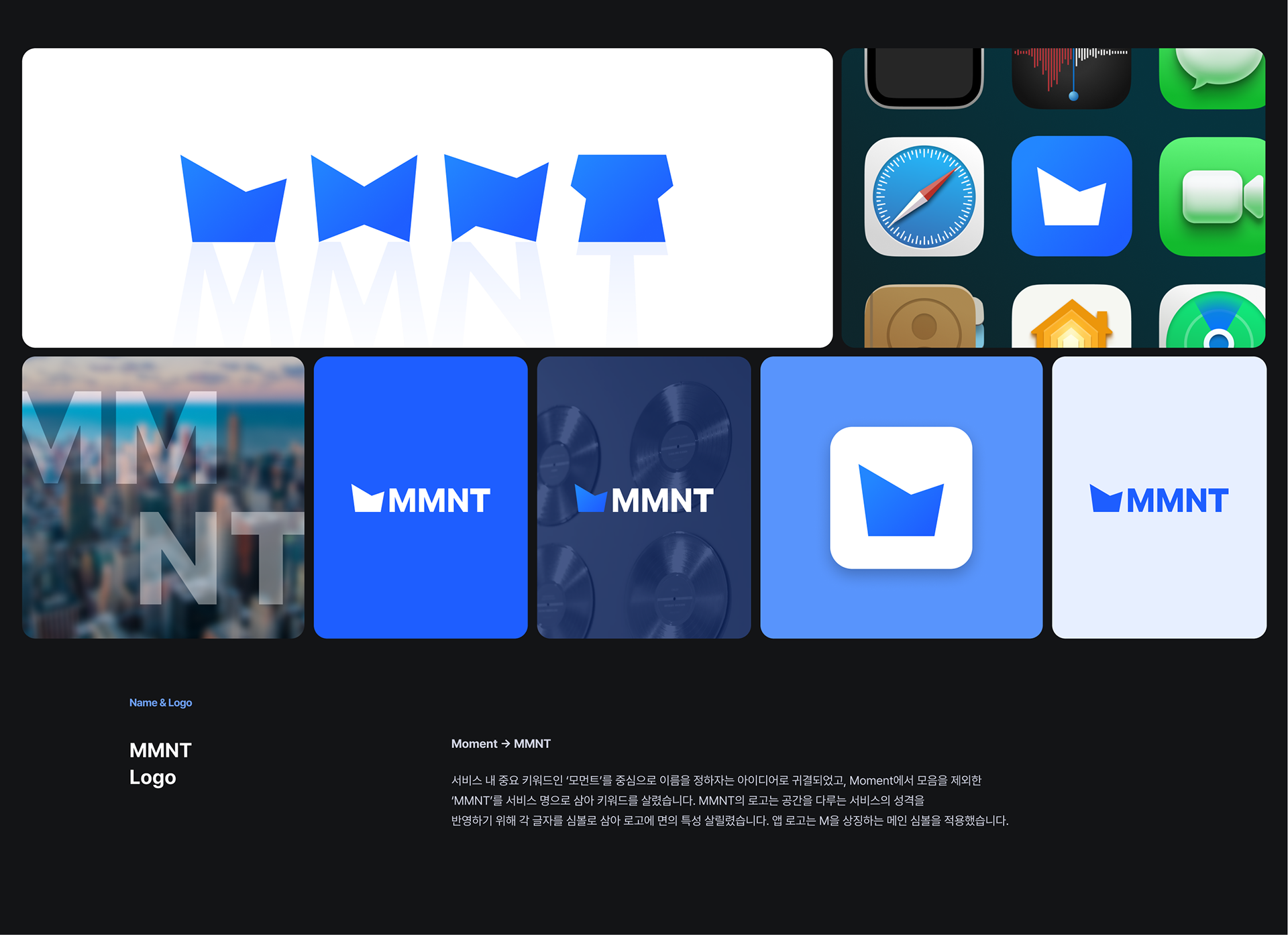 MMNT는 순간의 기억을 공간과 어울리는 음악과 함께 사진으로 남기고 싶은 분들을 위한 서비스입니다. 공간에 어울리는 음악과 함께 짧은 코멘트를 달아 피드형식으로 사진을 공유하는 방식으로 제작했습니다.